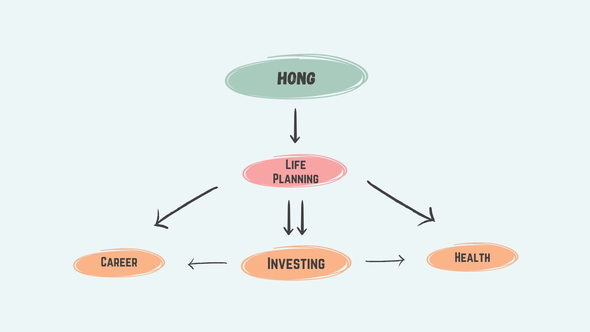 A pretty straightforward mind map, right? As you see, I am heavily invested in my life. I am the architect who plans how my life will turn out, and I am also the executor of the plan. It is ideal when a plan is executed as it is intended, but I have come to realize that is not always the case. Life often throws insane curve balls at you, unexpectedly. So, it is my responsibility to be prepared to hit those curve balls. Planning my life carefully will heighten the likelihood of scoring a home run. As I set my sights on hitting this home run, I am preparing to excel in the three crucial dimensions: Investing, Career, and Health.
